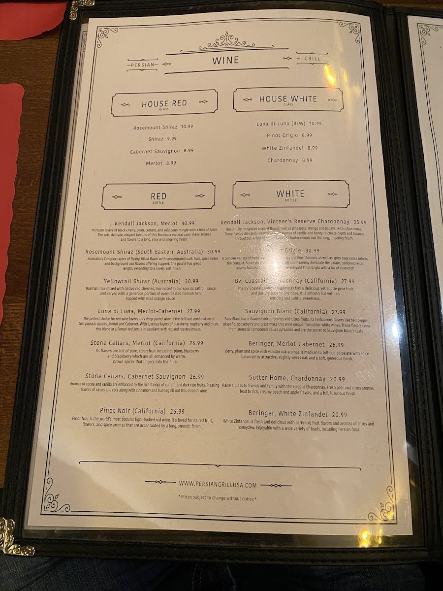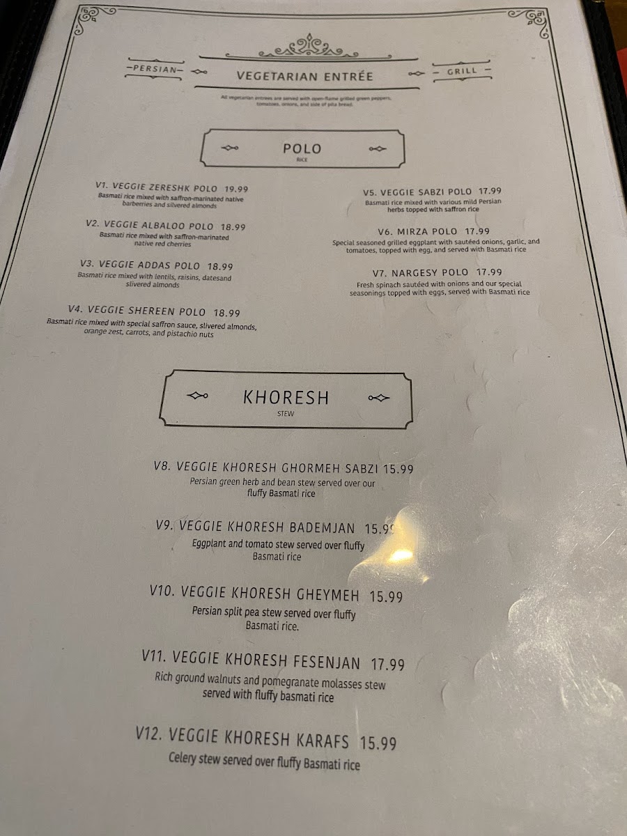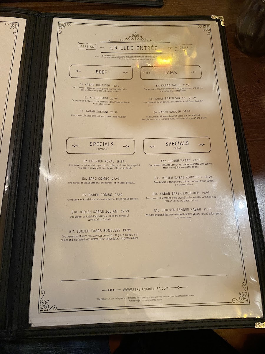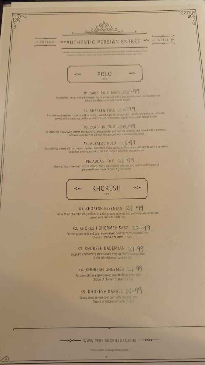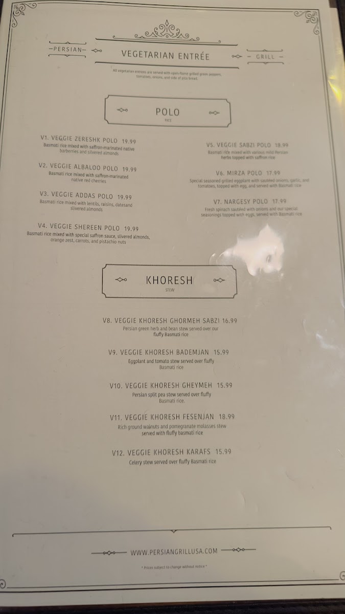 The Persian Grille Menu
